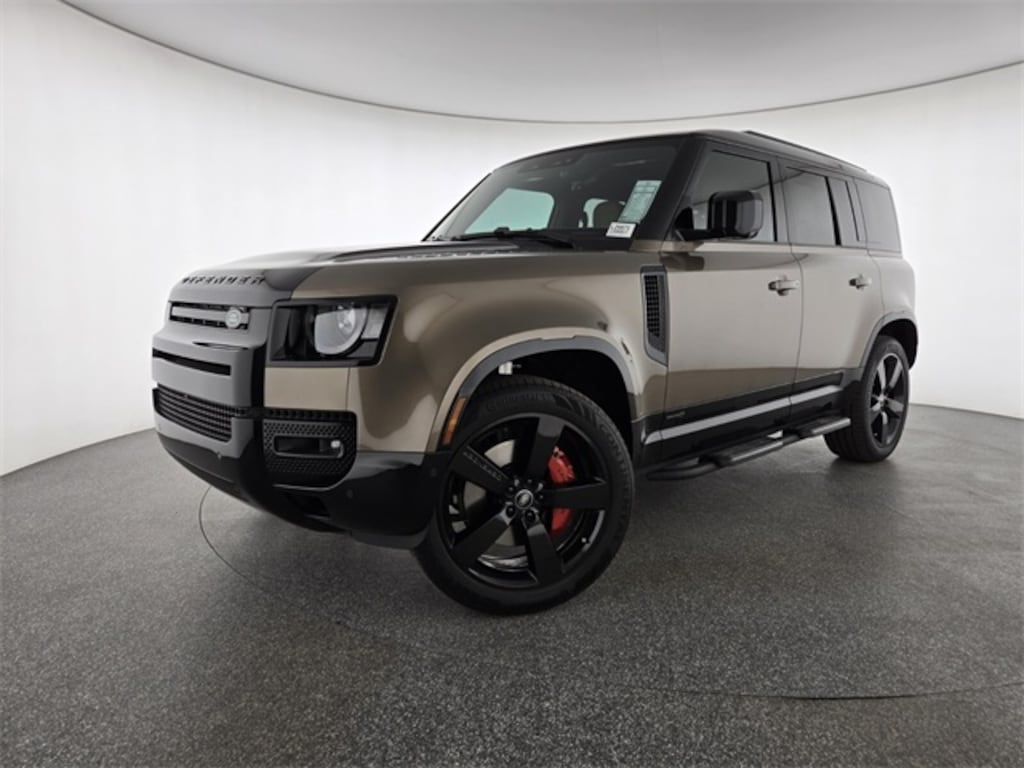 Gondwana Stone Metallic 2025 Land Rover Defender 110 X AWD 8-Speed Automatic 3.0L I6 14-Way Heated & Cooled Electric Memory Front Seats, 15 Speakers, 3-Zone Climate Control, 4-Wheel Disc Brakes, ABS brakes, Adaptive suspension, Advanced Tow Assist, Air Conditioning, Air Quality Sensor, Alloy wheels, AM/FM radio: SiriusXM, Apple CarPlay & Android Auto, Auto High-beam Headlights, Auto tilt-away steering wheel, Auto-dimming door mirrors, Auto-dimming Rear-View mirror, Automatic temperature control, Black Contrast Signature Graphic w/Interior Storage, Black Exposed Rear Recovery Eyes, Black Fixed Side Steps, Black Wheel Protection Pack, Brake assist, Bumpers: body-color, Cabin Air Purification Plus, Compass, Delay-off headlights, Driver door bin, Driver vanity mirror, Dual front impact airbags, Dual front side impact airbags, Electronic Stability Control, Emergency Pack, Exterior Parking Camera Rear, Four wheel independent suspension, Front anti-roll bar, Front Bucket Seats, Front Center Armrest, Front Center Console Refrigerator Compartment, Front dual zone A/C, Front fog lights, Front reading lights, Fully automatic headlights, Garage door transmitter: HomeLink, Handover Pack, Heads-Up Display, Heated door mirrors, Heated front seats, Heated rear seats, Heated steering wheel, Illuminated entry, Leather Shift Knob, Leather steering wheel, Low tire pressure warning, Memory seat, Navigation system: Connected Navigation PIVI Pro, Occupant sensing airbag, Outside temperature display, Overhead airbag, Overhead console, Panic alarm, Passenger door bin, Passenger vanity mirror, Power door mirrors, Power driver seat, Power moonroof, Power passenger seat, Power steering, Power windows, Radio data system, Radio: Meridian Surround Sound System, Rain sensing wipers, Rear anti-roll bar, Rear fog lights, Rear reading lights, Rear seat center armrest, Rear Seat Convenience Pack, Rear window defroster, Rear window wiper, Remote keyless entry, Security system, Speed control, Speed-sensing steering, Speed-Sensitive Wipers, Split folding rear seat, Steering wheel memory, Steering wheel mounted audio controls, Tachometer, Telescoping steering wheel, Tilt steering wheel, Tow Hitch Receiver, Towing Pack, Traction control, Trip computer, Variably intermittent wipers, Ventilated front seats, Weather band radio, Wheels: 22" Gloss Black Style 5098, Wheels: 22" Gloss Sparkle Silver Style 5098, Wi-Fi Enabled w/Data Plan, Windsor Leather & Kvadrat Seat Trim.