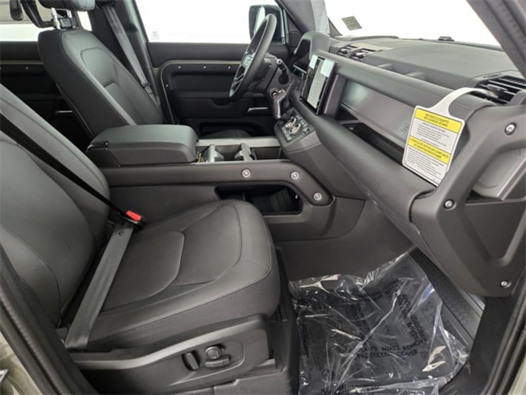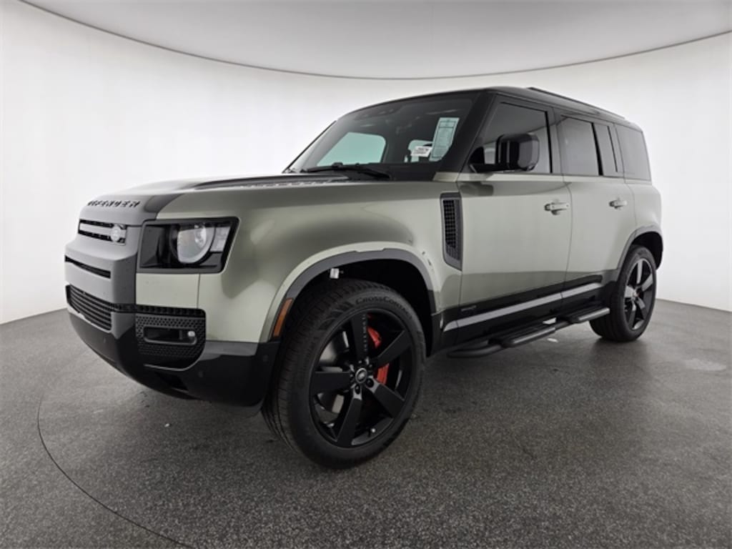 Pangea Green Metallic 2025 Land Rover Defender 110 X AWD 8-Speed Automatic 3.0L I6 14-Way Heated & Cooled Electric Memory Front Seats, 15 Speakers, 3-Zone Climate Control, 4-Wheel Disc Brakes, ABS brakes, Adaptive suspension, Advanced Tow Assist, Air Conditioning, Air Quality Sensor, Alloy wheels, AM/FM radio: SiriusXM, Apple CarPlay & Android Auto, Auto High-beam Headlights, Auto tilt-away steering wheel, Auto-dimming door mirrors, Auto-dimming Rear-View mirror, Automatic temperature control, Black Contrast Signature Graphic w/Interior Storage, Black Exposed Rear Recovery Eyes, Black Fixed Side Steps, Black Wheel Protection Pack, Brake assist, Bumpers: body-color, Cabin Air Purification Plus, Compass, Delay-off headlights, Driver door bin, Driver vanity mirror, Dual front impact airbags, Dual front side impact airbags, Electronic Stability Control, Emergency Pack, Exterior Parking Camera Rear, Four wheel independent suspension, Front anti-roll bar, Front Bucket Seats, Front Center Armrest, Front Center Console Refrigerator Compartment, Front dual zone A/C, Front fog lights, Front reading lights, Fully automatic headlights, Garage door transmitter: HomeLink, Handover Pack, Heads-Up Display, Heated door mirrors, Heated front seats, Heated rear seats, Heated steering wheel, Illuminated entry, Leather Shift Knob, Leather steering wheel, Low tire pressure warning, Memory seat, Navigation system: Connected Navigation PIVI Pro, Occupant sensing airbag, Outside temperature display, Overhead airbag, Overhead console, Panic alarm, Passenger door bin, Passenger vanity mirror, Power door mirrors, Power driver seat, Power moonroof, Power passenger seat, Power steering, Power windows, Radio data system, Radio: Meridian Surround Sound System, Rain sensing wipers, Rear anti-roll bar, Rear fog lights, Rear reading lights, Rear seat center armrest, Rear Seat Convenience Pack, Rear window defroster, Rear window wiper, Remote keyless entry, Security system, Speed control, Speed-sensing steering, Speed-Sensitive Wipers, Split folding rear seat, Steering wheel memory, Steering wheel mounted audio controls, Tachometer, Telescoping steering wheel, Tilt steering wheel, Tow Hitch Receiver, Towing Pack, Traction control, Trip computer, Variably intermittent wipers, Ventilated front seats, Weather band radio, Wheels: 22" Gloss Black Style 5098, Wheels: 22" Gloss Sparkle Silver Style 5098, Wi-Fi Enabled w/Data Plan, Windsor Leather & Kvadrat Seat Trim.
