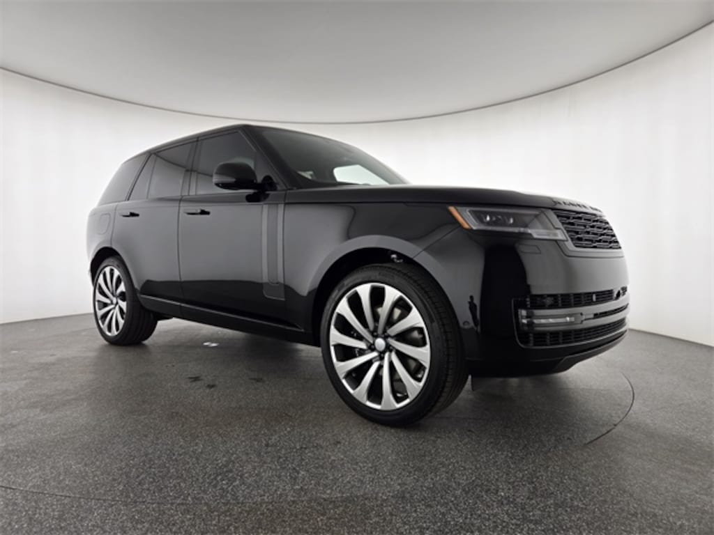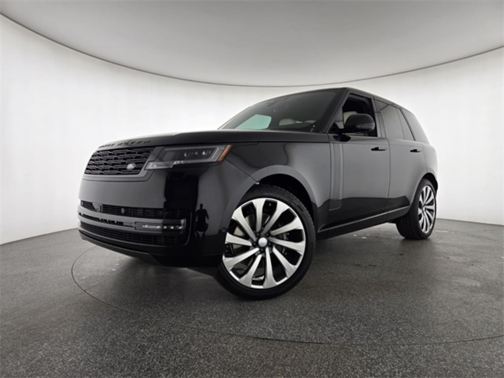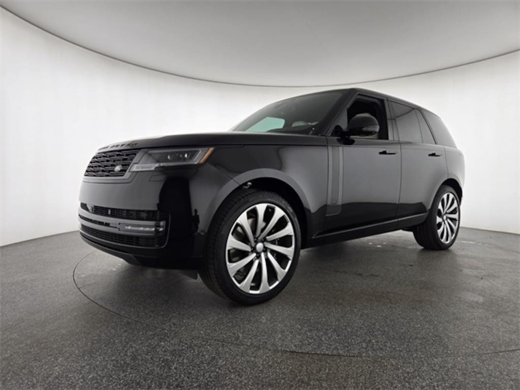 Santorini Black Metallic 2025 Land Rover Range Rover SE AWD ZF 8-Speed Automatic 4.4L V8 Twin Turbocharged Perlino Leather, 19 Speakers, 20-Way Heated/Ventilated Electric Fr Bucket Seats, 24-Way Heated & Cooled Massage Electric Fr Seats, 4-Wheel Disc Brakes, ABS brakes, Adaptive suspension, Advanced Tow Assist, Air Conditioning, Alloy wheels, AM/FM radio: SiriusXM w/360L, Anti-whiplash front head restraints, Apple CarPlay & Android Auto, Auto High-beam Headlights, Auto tilt-away steering wheel, Auto-dimming door mirrors, Auto-dimming Rear-View mirror, Auto-leveling suspension, Automatic temperature control, Black Brake Calipers, Brake assist, Bumpers: body-color, ClearSight Interior Rear-View Mirror, Compass, Delay-off headlights, Driver door bin, Driver vanity mirror, Driver's Seat Mounted Armrest, Dual front impact airbags, Dual front side impact airbags, Ebony Headlining, Electronic Stability Control, Emergency communication system, Emergency Pack, Exterior Parking Camera Rear, Four wheel independent suspension, Front anti-roll bar, Front Bucket Seats, Front Center Armrest w/Storage, Front dual zone A/C, Front fog lights, Front reading lights, Fully automatic headlights, Garage door transmitter: HomeLink, Genuine wood console insert, Genuine wood door panel insert, Head restraints memory, Head-Up Display, Headlight cleaning, Heated door mirrors, Heated front seats, Heated rear seats, Heated steering wheel, Illuminated entry, Illuminated Seat Belt Buckles, Leather Shift Knob, Leather steering wheel, Low tire pressure warning, Memory seat, Meridian 3D Surround Sound System, Natural Ecru Walnut Veneer, Navigation system: Pivi Pro Connected Navigation, Occupant sensing airbag, Outside temperature display, Overhead airbag, Overhead console, Panic alarm, Passenger door bin, Passenger seat mounted armrest, Passenger vanity mirror, Perforated Windsor Leather Seat Trim, Power adjustable front head restraints, Power door mirrors, Power driver seat, Power moonroof, Power passenger seat, Power steering, Power windows, Premium audio system: Meridian, Premium Interior Protection & Storage Pack, Radio data system, Radio: SiriusXM Satellite & HD Audio System, Rain sensing wipers, Range Rover Handover Pack, Rear air conditioning, Rear anti-roll bar, Rear fog lights, Rear reading lights, Rear seat center armrest, Rear window defroster, Rear window wiper, Remote keyless entry, Security system, Shadow Exterior Pack, Speed control, Speed-sensing steering, Speed-Sensitive Wipers, Split folding rear seat, Spoiler, Steering wheel memory, Steering wheel mounted A/C controls, Steering wheel mounted audio controls, SV Bespoke Wood & Leather Steering Wheel, Tachometer, Telescoping steering wheel, Tilt steering wheel, Tow Hitch Receiver, Towing Pack, Traction control, Trip computer, Turn signal indicator mirrors, Variably intermittent wipers, Ventilated front seats, Ventilated rear seats, Weather band radio, Wheel Protection Pack, Wheels: 21" Diamond Turned w/Glss Drk Gry Contrast, Wheels: 23" SV Bespoke Silver w/Gloss Gry Contrast, Perlino Leather.