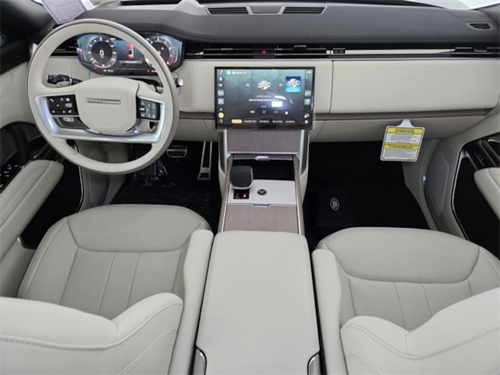 Charente Gray Premium Metallic 2025 Land Rover Range Rover SE AWD ZF 8-Speed Automatic 4.4L V8 Twin Turbocharged Perlino Leather, 19 Speakers, 20-Way Heated/Ventilated Electric Fr Bucket Seats, 4-Wheel Disc Brakes, ABS brakes, Adaptive suspension, Advanced Tow Assist, Air Conditioning, Alloy wheels, AM/FM radio: SiriusXM w/360L, Anti-whiplash front head restraints, Apple CarPlay & Android Auto, Auto High-beam Headlights, Auto tilt-away steering wheel, Auto-dimming door mirrors, Auto-dimming Rear-View mirror, Auto-leveling suspension, Automatic temperature control, Black Contrast Roof, Brake assist, Bumpers: body-color, Compass, Delay-off headlights, Driver door bin, Driver vanity mirror, Driver's Seat Mounted Armrest, Dual front impact airbags, Dual front side impact airbags, Electronic Stability Control, Emergency communication system, Emergency Pack, Exterior Parking Camera Rear, Four wheel independent suspension, Front anti-roll bar, Front Bucket Seats, Front Center Armrest w/Storage, Front dual zone A/C, Front fog lights, Front reading lights, Fully automatic headlights, Garage door transmitter: HomeLink, Genuine wood console insert, Genuine wood door panel insert, Head restraints memory, Head-Up Display, Headlight cleaning, Heated door mirrors, Heated front seats, Heated rear seats, Heated steering wheel, Illuminated entry, Leather Shift Knob, Leather steering wheel, Low tire pressure warning, Memory seat, Meridian 3D Surround Sound System, Natural Ecru Walnut Veneer, Navigation system: Pivi Pro Connected Navigation, Occupant sensing airbag, Outside temperature display, Overhead airbag, Overhead console, Panic alarm, Passenger door bin, Passenger seat mounted armrest, Passenger vanity mirror, Perforated Windsor Leather Seat Trim, Power adjustable front head restraints, Power door mirrors, Power driver seat, Power moonroof, Power passenger seat, Power steering, Power windows, Premium audio system: Meridian, Radio data system, Radio: SiriusXM Satellite & HD Audio System, Rain sensing wipers, Range Rover Handover Pack, Rear air conditioning, Rear anti-roll bar, Rear fog lights, Rear reading lights, Rear seat center armrest, Rear window defroster, Rear window wiper, Remote keyless entry, Security system, Shadow Exterior Pack, Speed control, Speed-sensing steering, Speed-Sensitive Wipers, Split folding rear seat, Spoiler, Steering wheel memory, Steering wheel mounted A/C controls, Steering wheel mounted audio controls, SV Bespoke Wood & Leather Steering Wheel, Tachometer, Telescoping steering wheel, Tilt steering wheel, Tow Hitch Receiver, Towing Pack, Traction control, Trip computer, Turn signal indicator mirrors, Variably intermittent wipers, Ventilated front seats, Ventilated rear seats, Weather band radio, Wheel Protection Pack, Wheels: 21" Diamond Turned w/Glss Drk Gry Contrast, Wheels: 23" 10 Split-Spoke Gloss Black, Perlino Leather.