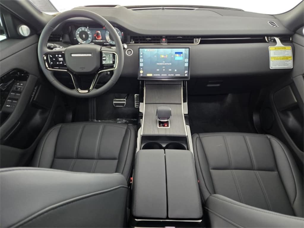 Santorini Black Metallic 2026 Land Rover Range Rover Evoque Dynamic AWD 9-Speed Automatic 2.0L Turbocharged 12 Speakers, 12-Way Heated Electric Front Seats w/Driver Memory, 4-Wheel Disc Brakes, ABS brakes, Adaptive Dynamics, Air Conditioning, Alloy wheels, AM/FM radio: SiriusXM, Apple CarPlay & Android Auto, Auto High-beam Headlights, Auto-dimming door mirrors, Auto-dimming Rear-View mirror, Automatic temperature control, Basic Rear Seat Convenience Pack, Black Wheel Locks & Lugs, Brake assist, Bumpers: body-color, Cargo Carrier, Clearsight Interior Rear View Mirror, Compass, Configurable Dynamics, Corinthian Bronze Contrast Roof, Delay-off headlights, Driver door bin, Driver vanity mirror, Dual front impact airbags, Dual front side impact airbags, Dynamic Handling Package, Electronic Stability Control, Emergency communication system: InControl Protect, Exterior Parking Camera Rear, Four wheel independent suspension, Front anti-roll bar, Front Bucket Seats, Front Center Armrest, Front dual zone A/C, Front fog lights, Front reading lights, Fully automatic headlights, Garage door transmitter: HomeLink, Grained Leather Seat Trim, Head-Up Display, Heated door mirrors, Heated front seats, Illuminated entry, Leather Shift Knob, Loadspace Mat, Low tire pressure warning, Memory seat, Navigation system: InControl Navigation Pro, Occupant sensing airbag, Outside temperature display, Overhead airbag, Overhead console, Panic alarm, Passenger door bin, Passenger vanity mirror, Power door mirrors, Power driver seat, Power Liftgate, Power moonroof, Power passenger seat, Power steering, Power windows, Premium Interior Protection & Storage Pack, Radio data system, Radio: Meridian Sound System, Radio: Meridian Surround Sound System, Rain sensing wipers, Rear anti-roll bar, Rear fog lights, Rear reading lights, Rear seat center armrest, Rear window defroster, Rear window wiper, Remote keyless entry, Rubber Mats, Security system, Shadow Grey Ash Veneer, Speed control, Speed-sensing steering, Speed-Sensitive Wipers, Split folding rear seat, Spoiler, Steering wheel mounted audio controls, Tachometer, Technology Package, Telescoping steering wheel, Tilt steering wheel, Traction control, Trip computer, Turn signal indicator mirrors, Valve Stem Caps, Variably intermittent wipers, Wheel Protection Pack Black Locks/Lugs, Wheels: 19" Gloss Dark Grey (Style 5136), Wheels: 21" Gloss Black (Style 5078).