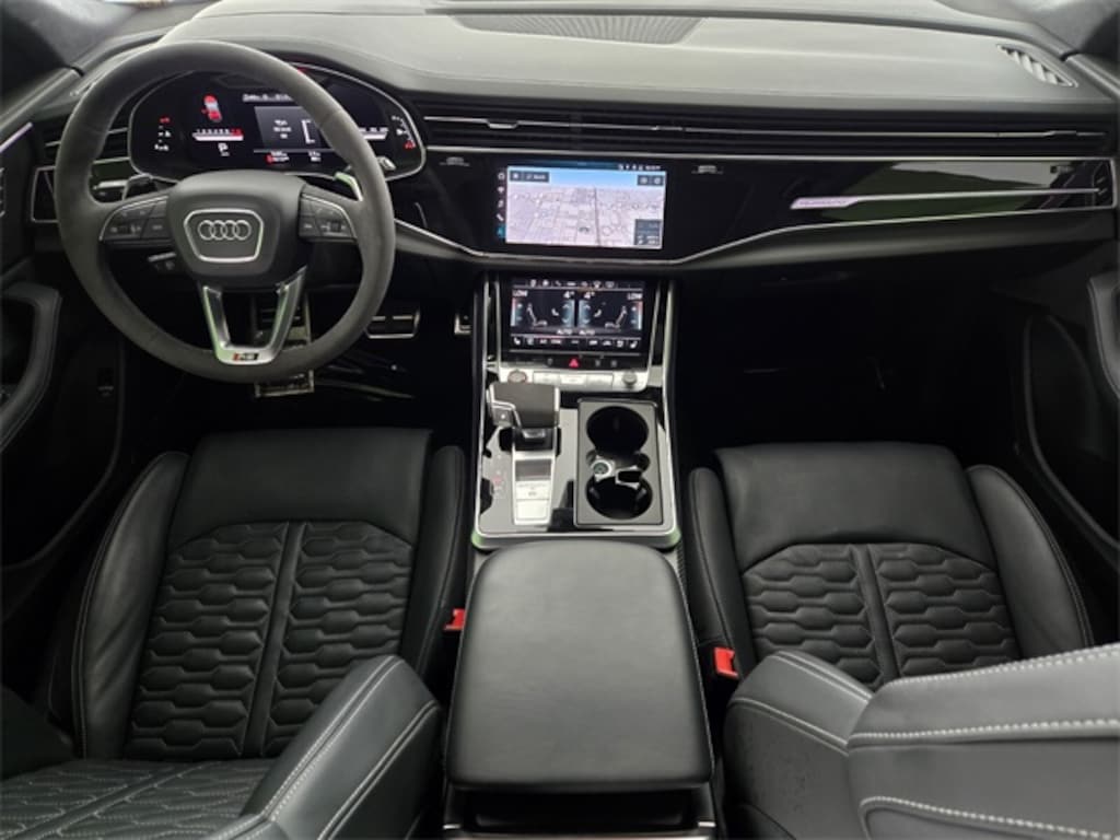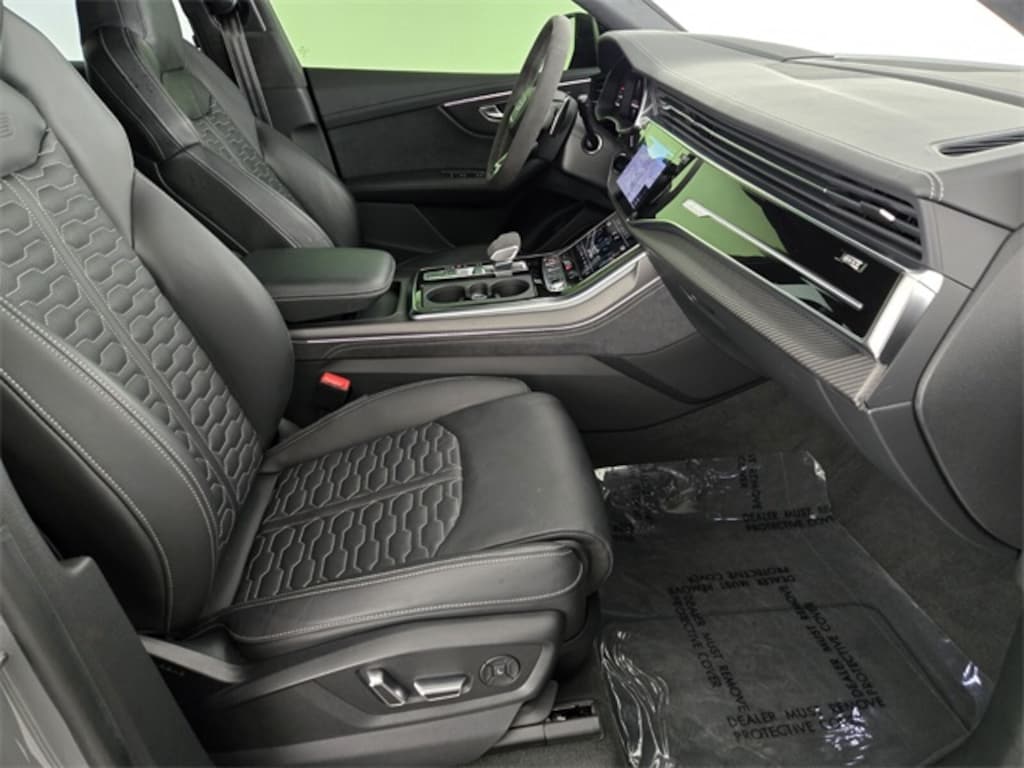 17 Speakers, 4-Wheel Disc Brakes, ABS brakes, Adaptive suspension, Air Conditioning, Alloy wheels, AM/FM radio: SiriusXM w/ 360L, Auto High-beam Headlights, Auto-dimming door mirrors, Auto-dimming Rear-View mirror, Auto-leveling suspension, Automatic temperature control, Bang & Olufsen Premium Sound System w/3D Sound, Brake assist, Bumpers: body-color, Compass, Delay-off headlights, Driver door bin, Driver vanity mirror, Dual front impact airbags, Dual front side impact airbags, Electronic Stability Control, Emergency communication system: Audi connect CARE, Exterior Parking Camera Rear, Four wheel independent suspension, Front anti-roll bar, Front Bucket Seats, Front Center Armrest, Front dual zone A/C, Front fog lights, Front reading lights, Fully automatic headlights, Garage door transmitter: HomeLink, Headlight cleaning, Heated & Ventilated Sports Seats Plus, Heated door mirrors, Heated front seats, Heated steering wheel, Illuminated entry, Leather Shift Knob, Leather steering wheel, Low tire pressure warning, Memory seat, Navigation system: Audi MMI Navigation plus with Touch Response, Occupant sensing airbag, Outside temperature display, Overhead airbag, Overhead console, Panic alarm, Passenger door bin, Passenger vanity mirror, Perforated Valcona Leather Seating Surfaces, Power door mirrors, Power driver seat, Power Liftgate, Power moonroof: Panoramic, Power passenger seat, Power steering, Power windows, Radio data system, Radio: MMI Navigation Plus, Rain sensing wipers, Rear air conditioning, Rear anti-roll bar, Rear dual zone A/C, Rear fog lights, Rear reading lights, Rear seat center armrest, Rear side impact airbag, Rear Window Blind, Rear window defroster, Rear window wiper, Remote keyless entry, Security system, Speed control, Speed-sensing steering, Split folding rear seat, Spoiler, Steering wheel memory, Steering wheel mounted audio controls, Tachometer, TBD Axle Ratio, Telescoping steering wheel, Tilt steering wheel, Traction control, Trip computer, Turn signal indicator mirrors, Variably intermittent wipers, Ventilated front seats, Wheels: 22" 10-V-Spoke Star Design.