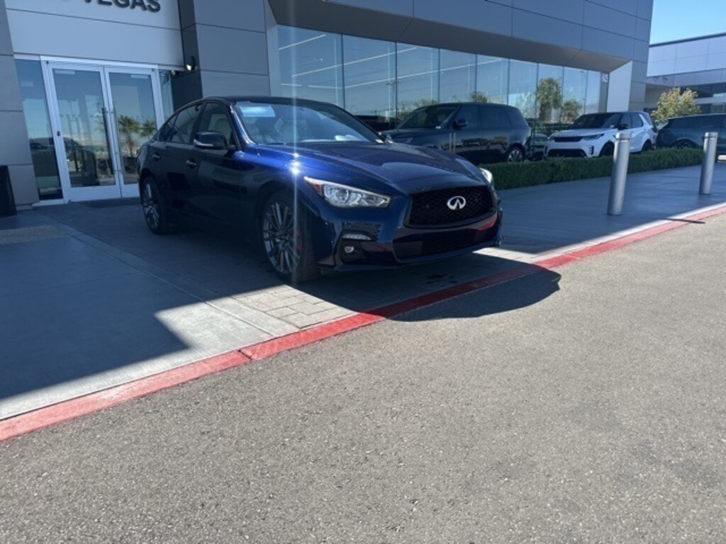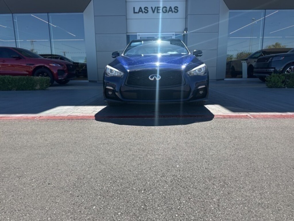16 Speakers, 4-Wheel Disc Brakes, ABS brakes, Adaptive suspension, Air Conditioning, Alloy wheels, AM/FM radio: SiriusXM, Apple CarPlay/Android Auto, Auto High-beam Headlights, Auto tilt-away steering wheel, Auto-dimming door mirrors, Auto-dimming Rear-View mirror, Automatic temperature control, Blind Spot Warning, Brake assist, Bumpers: body-color, CD player, Compass, Delay-off headlights, Driver door bin, Driver vanity mirror, Dual front impact airbags, Dual front side impact airbags, Electronic Stability Control, Emergency communication system: INFINITI Connection, Four wheel independent suspension, Front anti-roll bar, Front Bucket Seats, Front Center Armrest, Front dual zone A/C, Front fog lights, Front reading lights, Fully automatic headlights, Garage door transmitter: HomeLink, Heated door mirrors, Heated front seats, Heated Front Sport Seats, Heated steering wheel, Illuminated entry, INFINITI Radiant Illuminated Kick Plates, INFINITI Radiant Welcome Lighting, Leather Shift Knob, Leather steering wheel, Literature Kit, Low tire pressure warning, Memory seat, Navigation system: INFINITI InTouch Navigation, Occupant sensing airbag, Outside temperature display, Overhead airbag, Overhead console, Panic alarm, Passenger door bin, Passenger vanity mirror, Power door mirrors, Power driver seat, Power moonroof, Power passenger seat, Power steering, Power windows, Quilted Semi-Aniline Leather-Appointed Seating, Radio data system, Radio: INFINITI InTouch w/Navigation, Rain sensing wipers, Rear anti-roll bar, Rear reading lights, Rear seat center armrest, Rear USB Charging Ports, Rear window defroster, Remote keyless entry, Security system, Speed control, Speed-Sensitive Wipers, Splash Guards, Split folding rear seat, Steering wheel memory, Steering wheel mounted audio controls, Tachometer, Telescoping steering wheel, Tilt steering wheel, Traction control, Trip computer, Turn signal indicator mirrors, Variably intermittent wipers, Wheels: 19" x 9" Fr/19" x 9.5" Rr.